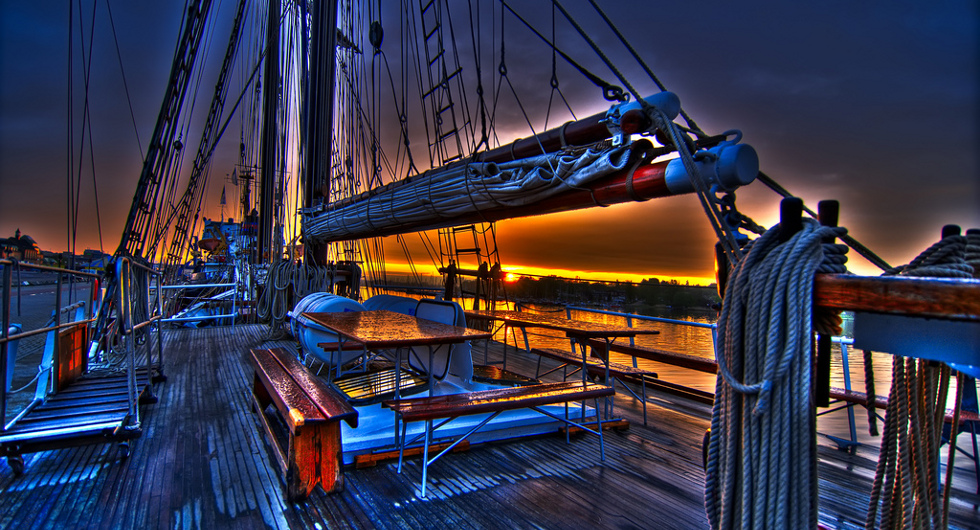 Η πρώτη εικόνα της ημέρας πάνω σε ένα σκάφος κάπου στο Ροστόκ