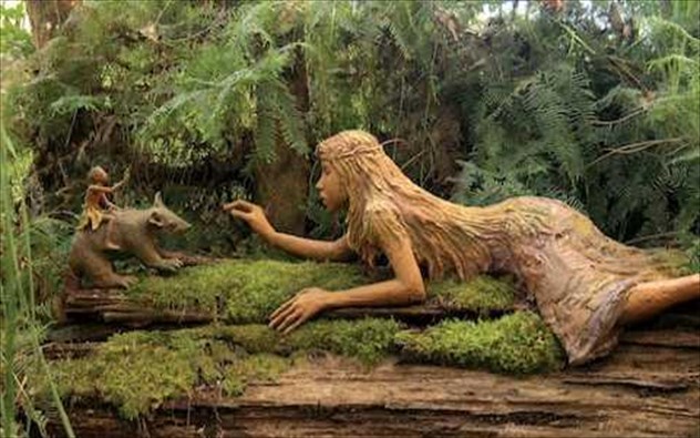 Ένας μαγικός κήπος με ξύλινα αγάλματα βγαλμένος απο παραμύθι