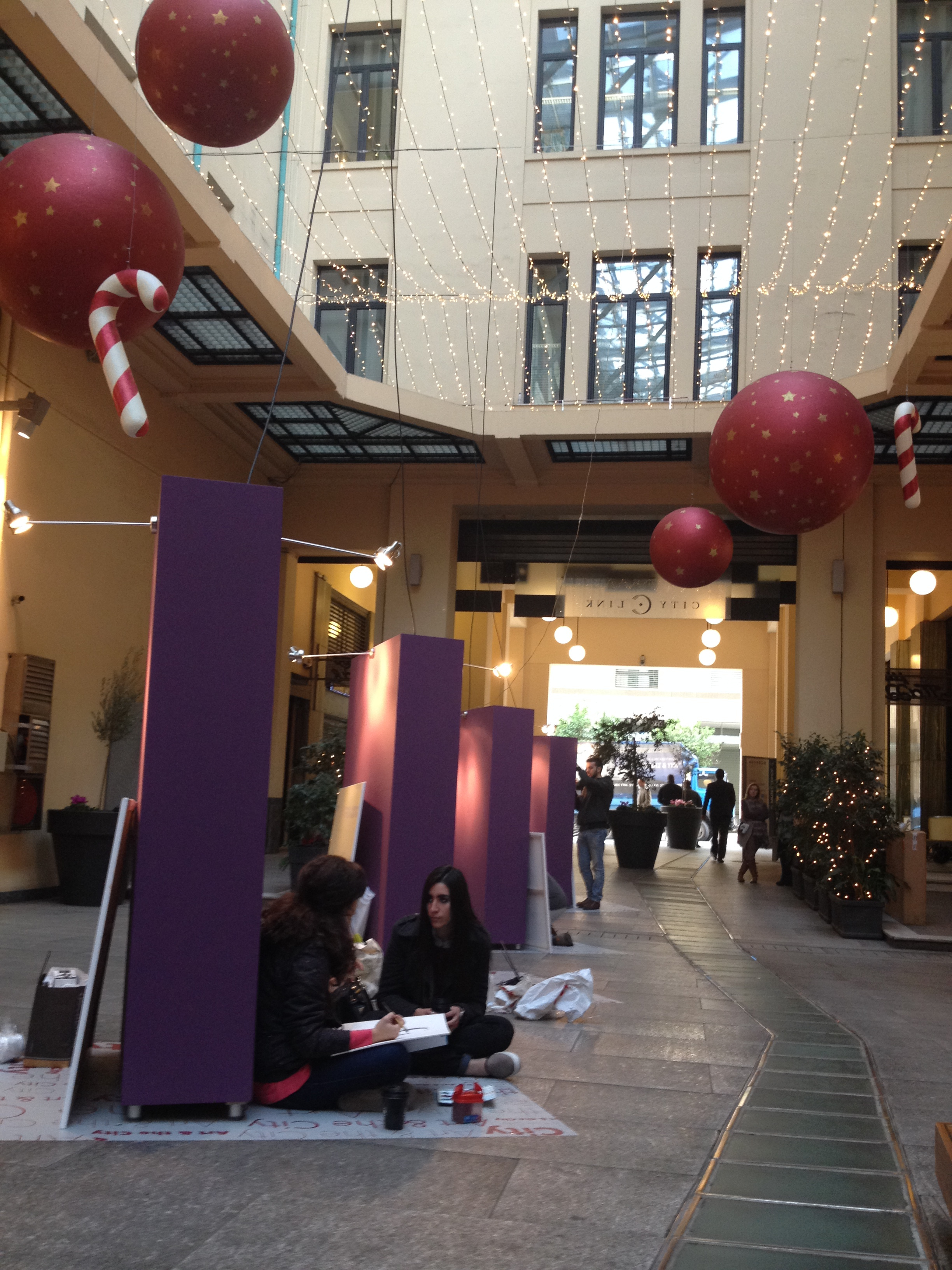 Τι κάνουν 16 φοιτητές με σπρέι, χρώματα, μολύβια και καμβάδες στη στολισμένη Στοά Σπυρομήλιου