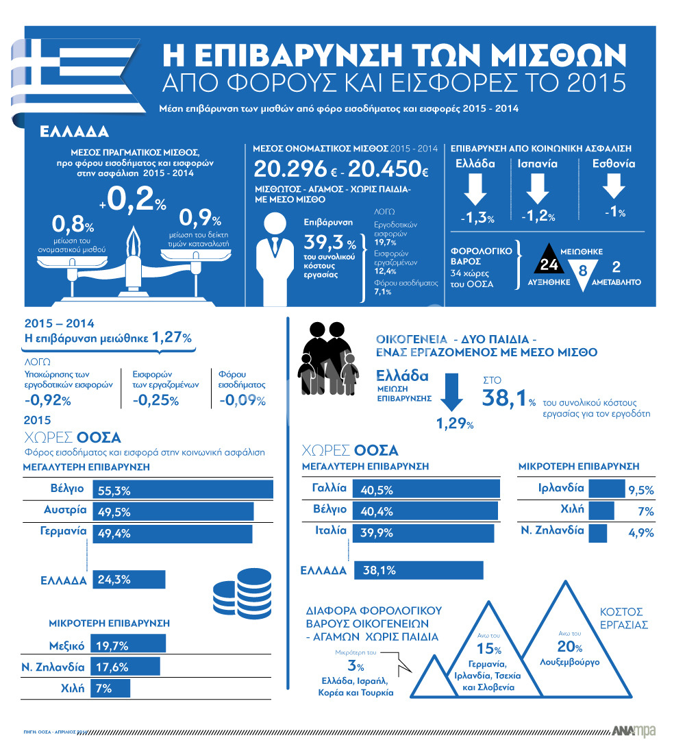 Η επιβάρυνση των μισθών από φόρους και εισφορές το 2015