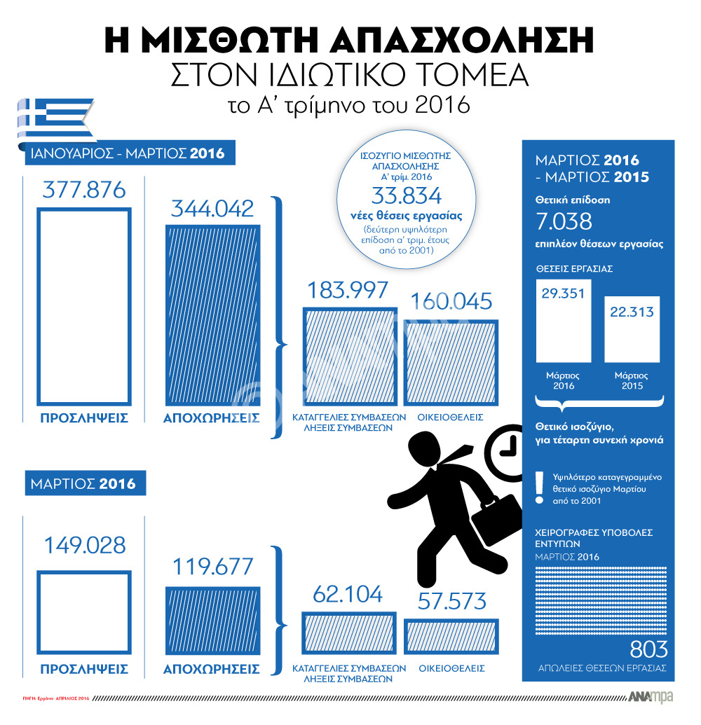 Η μισθωτή απασχόληση στον ιδιωτικό τομέα το Α' τρίμηνο του 2016